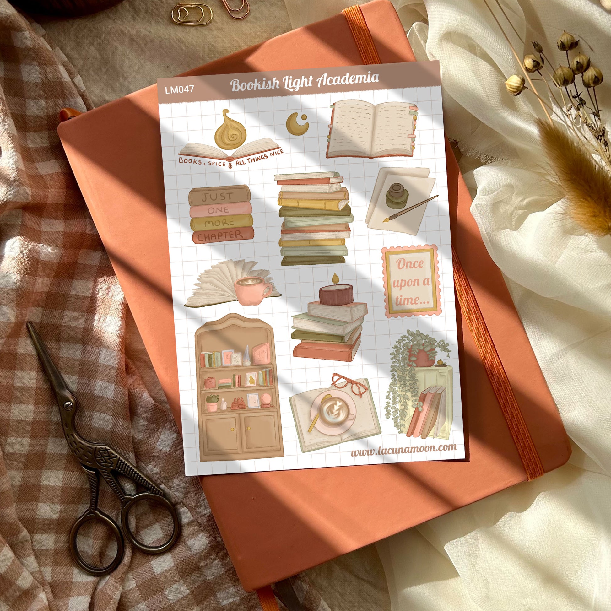 Express your love for books with our quirky Bookish Light Academia Sticker Sheet! Featuring lots of books and more, these stickers will add character to your journals. Perfect for bookworms and avid readers alike!