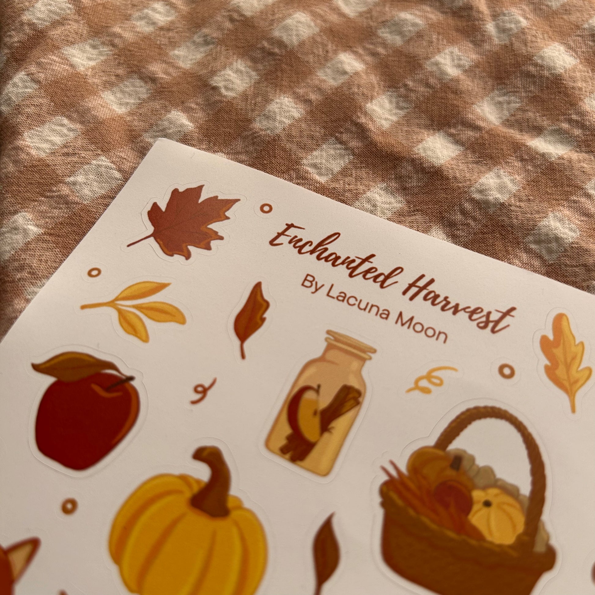 Bring autumn magic to your creative projects with this enchanting sticker sheet bursting with seasonal charm. Featuring a delightful mix of harvest treasures; golden leaves, acorns, plump pumpkins, a bountiful vegetable basket, woodland creatures like a curious fox and cheerful bird, plus apples, toadstools, a cosy candle, and a mystical tincture bottle. Bonus: a decorative faux washi strip adorned with leafy patterns. Perfect for personalising junk journals, bullet journals, scrapbooks, and beyond.