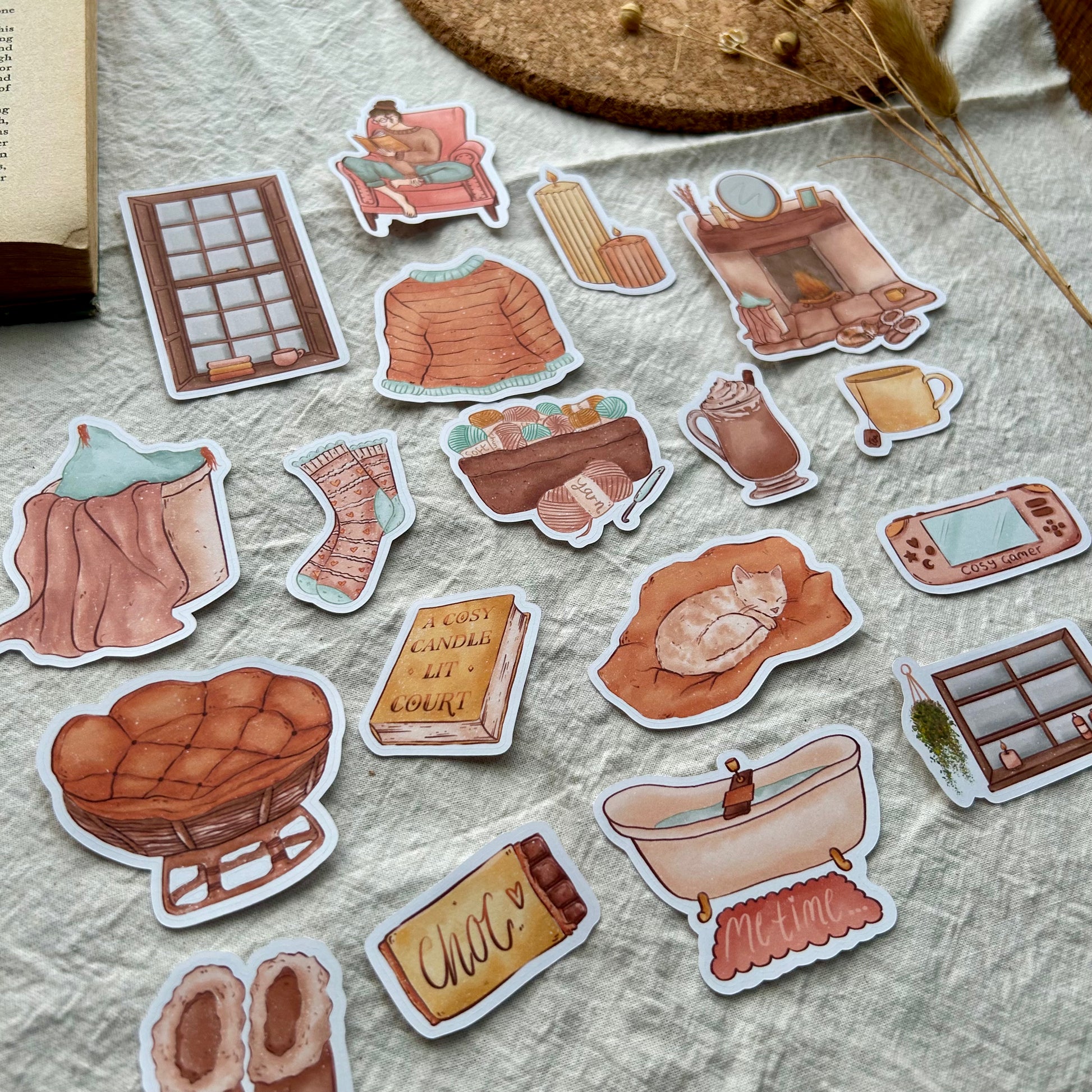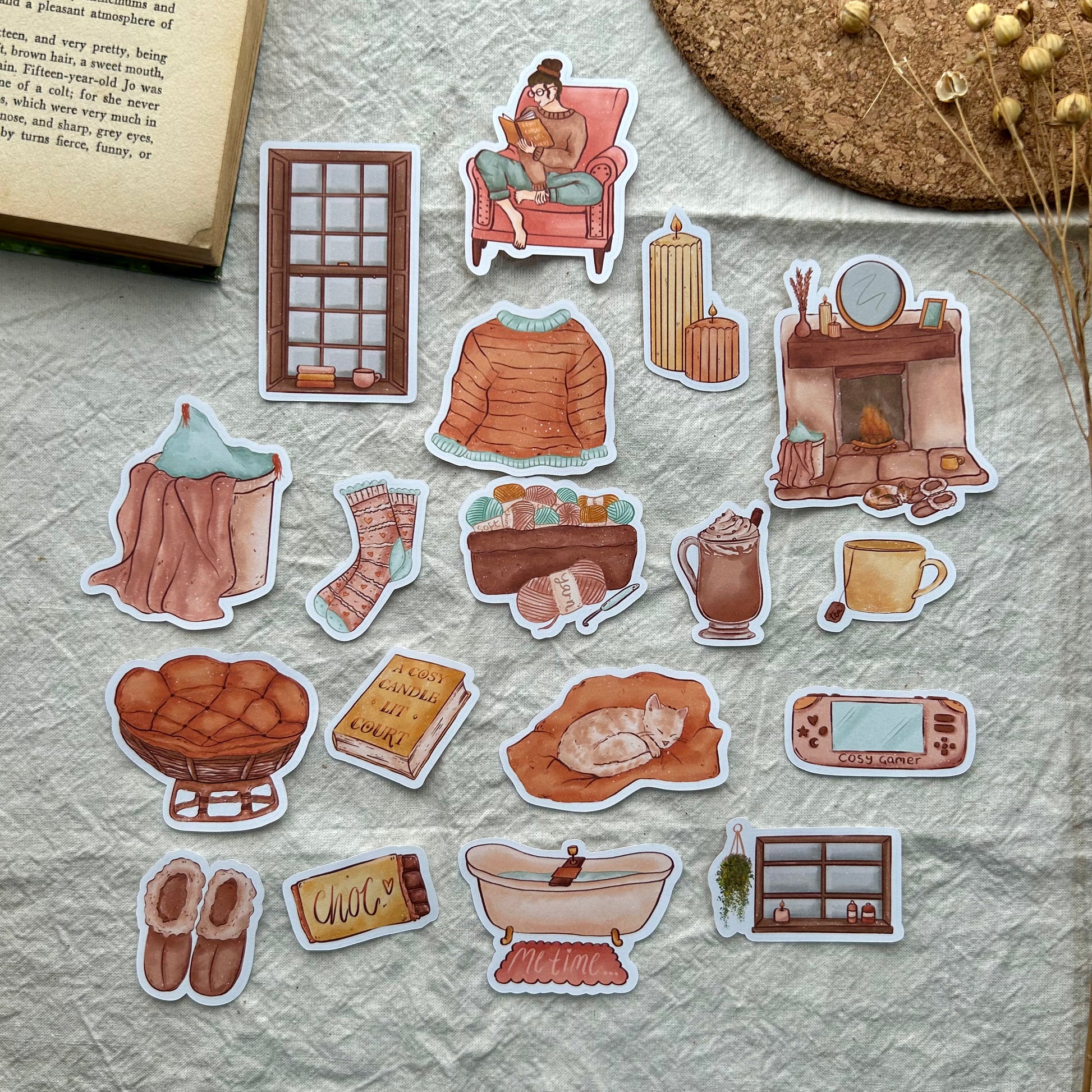 Get ready to snuggle up and journal with our Stay Cosy Sticker Pack! Hand illustrated candles, jumpers, hot chocolate, and more will warm up your spreads. Perfect for creating a cosy vibe as you write.