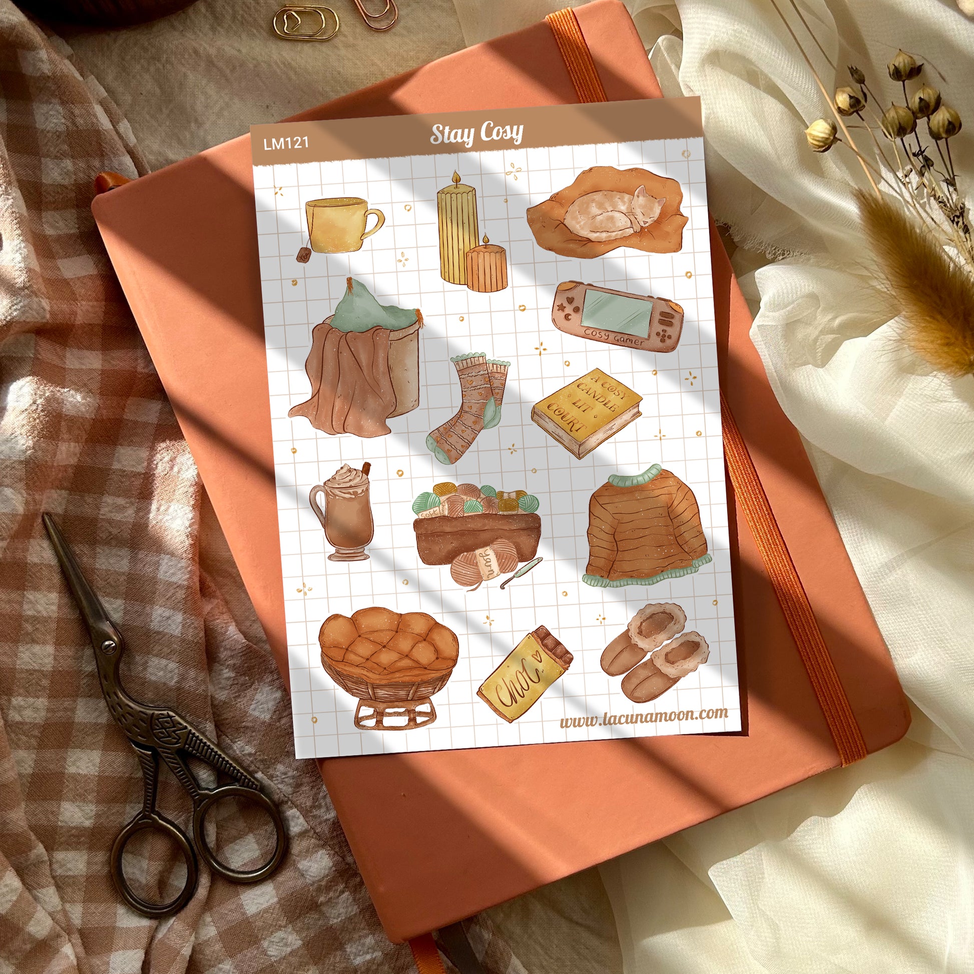 Transform your journal into a cosy haven with our Stay Cosy Sticker Sheet. Adorned in blankets, socks, candles, books, and more, these stickers add the perfect touch to your autumn aesthetic. Get ready to snuggle up with this charming sticker sheet!