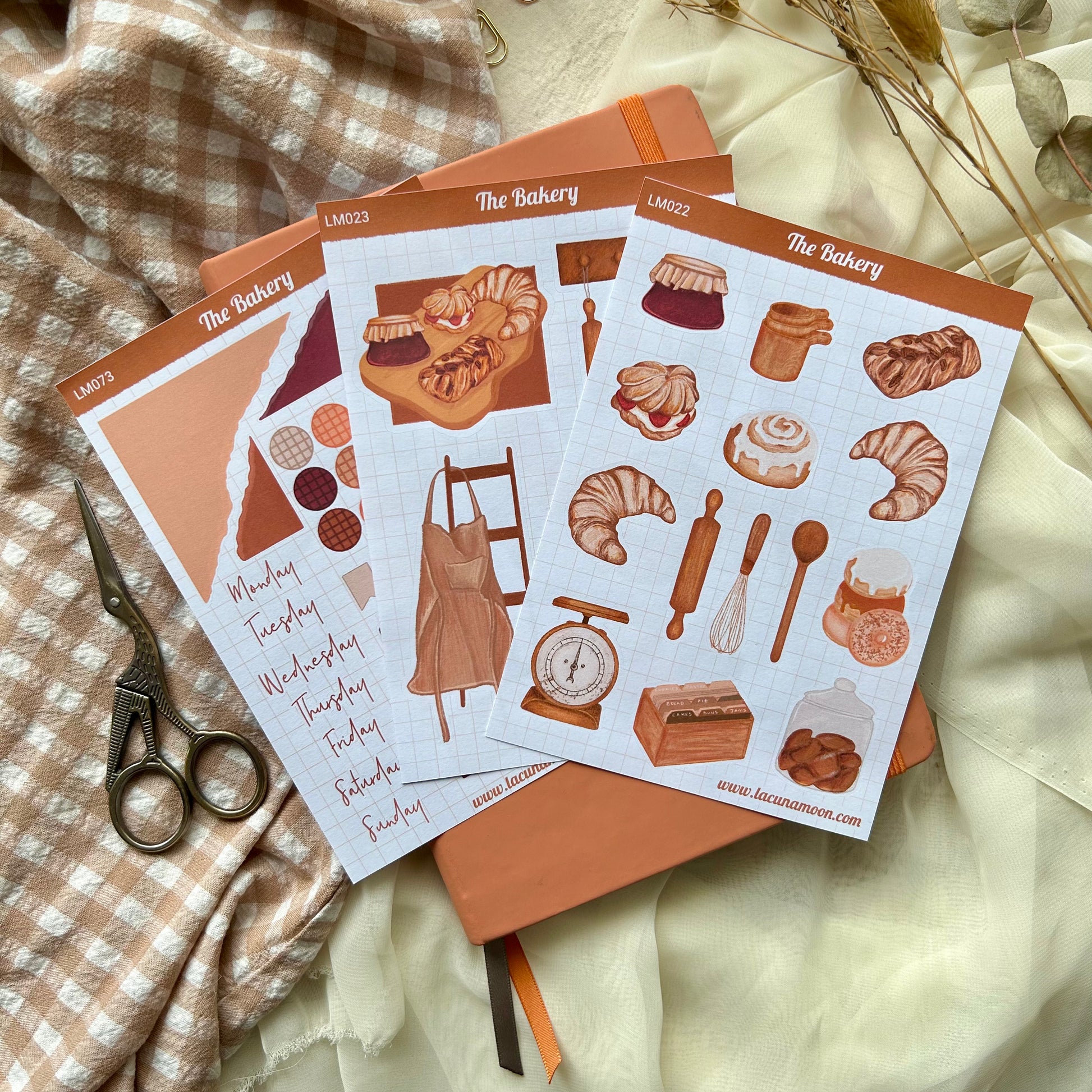 Sticker up your journals with these quirky Bakery Sticker Sheets! Each set comes with 3 sheets featuring bakery-themed illustrations, along with a decorative sheet, mini scenes sheet, and ephemera sheet. Add some literary flair to your notebooks, planners, or anywhere else you want to show off your love for reading! From donuts to croissants, this set is perfect for adding a touch of whimsy to your day. (Warning: not edible)